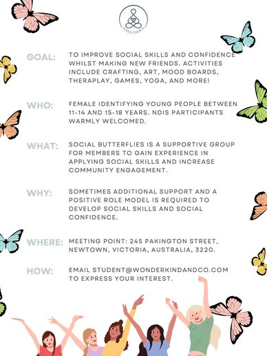 A supportive group program for young girls to gain social skills and to have fun with new friends in a safe and supportive environment.